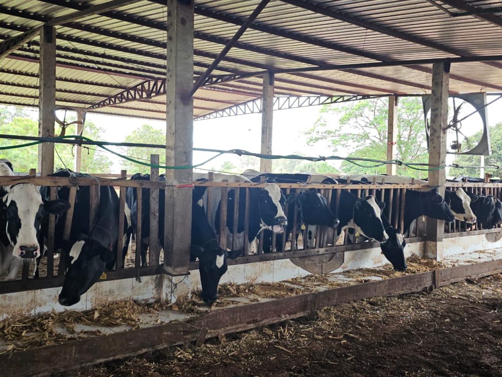 Cristian conta que o ambiente não fica quente demais para os animais, pois o sistema de ventilação esfria o calor gerado pela fermentação e refrigera os animais. O gado tem acesso a tudo o que precisa para a produção leiteira, com o mínimo de estresse e desgaste possível. A alimentação é fornecida em uma pista onde os animais têm acesso à nebulização com água e ventilação durante o aquecimento resultante da alimentação. Assim, eles comem o quanto precisam sem a necessidade de sair para se refrescar.