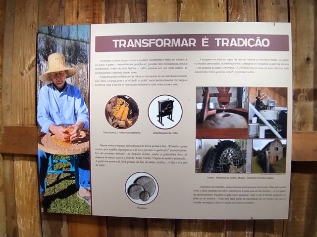 Durante o processo de reforma surgiu a ideia de montar um pequeno museu dedicado à história da família, do cultivo e do beneficiamento do milho em Pinhalzinho. O Galpão do Milho transporta os visitantes ao passado através de fotos, relatos e objetos que reconstroem memórias e dão visibilidade à saberes tradicionais ligados ao cultivo do grão. “Esse espaço conta a história da família, uma história enraizada na produção de milho. A ideia é mostrar para as pessoas, como era o processo do plantio até o beneficiamento do milho crioulo antigamente”, diz Armelindo. O projeto, desenvolvido pela Catavento Projetos e Consultorias, e viabilizado com recursos da lei Aldir Blanc de fomento à cultura, mergulha nas memórias de moradores da região para ressaltar a importância do cultivo do milho para o município.