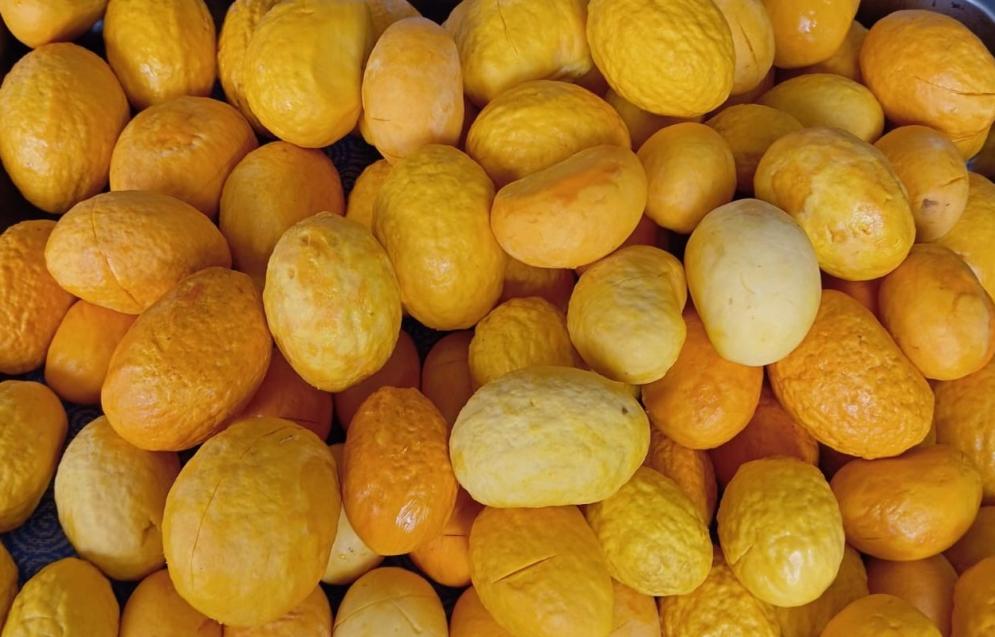 Os frutos produzidos são diversos, desde as variedades com grande espessura de polpa, com menor espessura de polpa, amarelo bem intenso, amarelo mais claro, e até quase brancas.