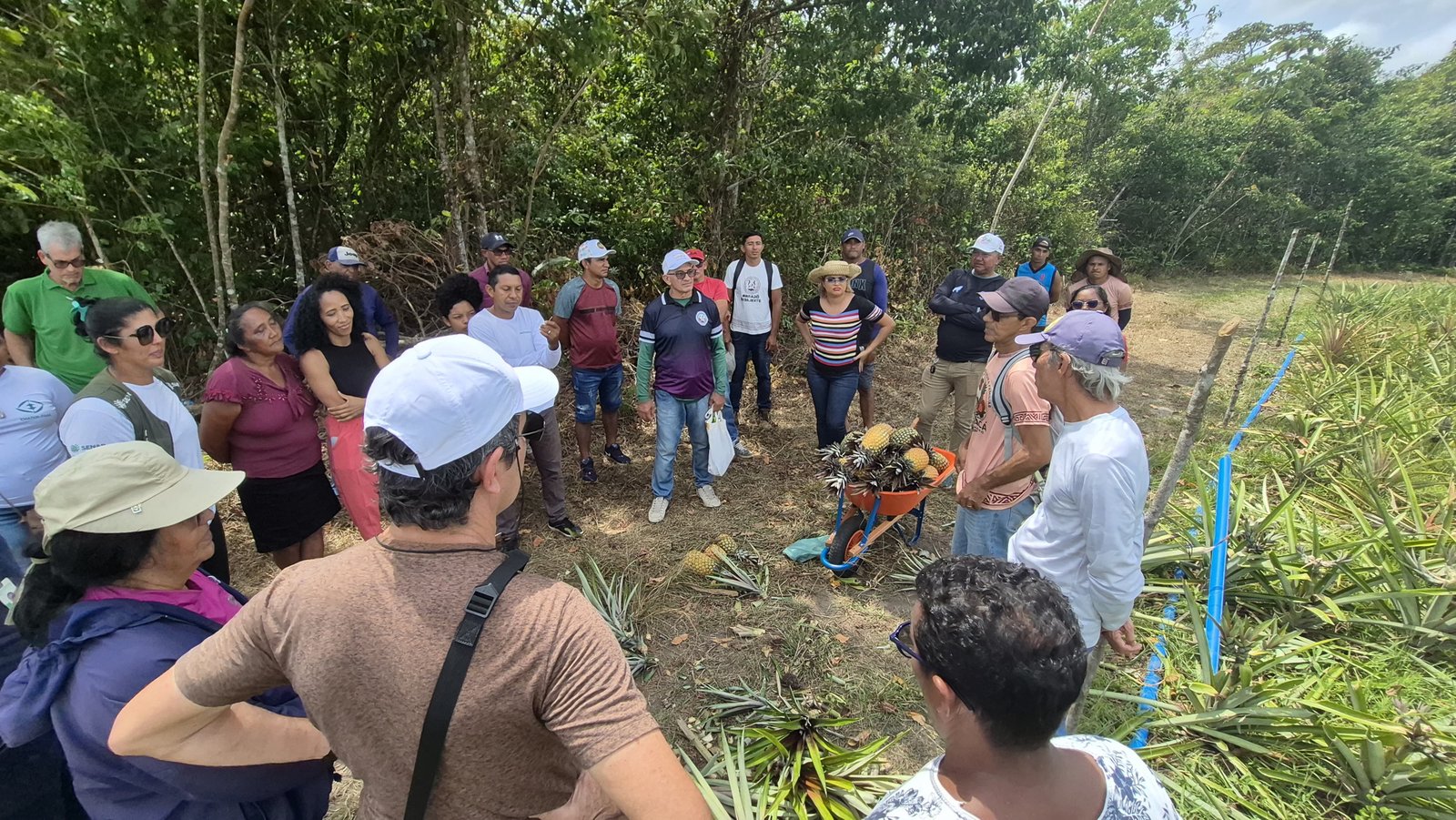 Neste fim de semestre comemorativo de aniversário emblemático, mais uma capacitação intensiva promovida pela Emater e parceiros reforçou boas práticas no cultivo de abacaxizeiro: de 25 a 28 de novembro, com a contribuição de especialistas da Empresa Brasileira de Pesquisa Agropecuária (Embrapa) e da Sedap, foram três dias de curso e mais um Dia de Campo para 25 agricultores e 17 técnicos de entidades públicas diversas.