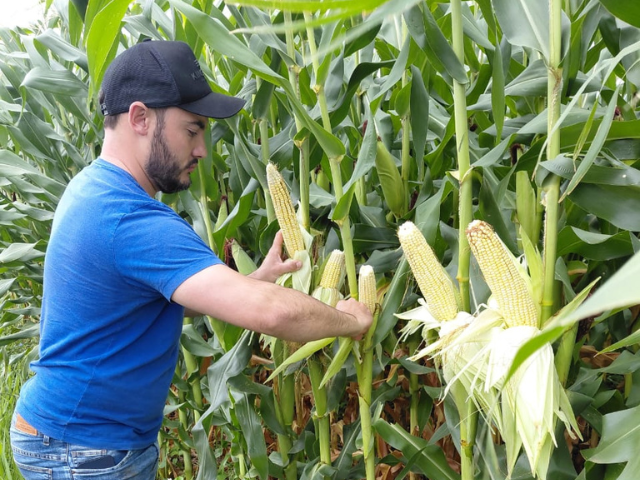 Produtor rural e engenheiro agrônomo, Leonardo Zeni, utiliza bioinsumos desde 2020 na propriedade que administra junto com o pai, em Guatambu, no Oeste catarinense. Entre as culturas, destaque para o milho. “Nós estamos sempre buscando formas de melhorar a produtividade e foi assim que conhecemos os bioinsumos. Fizemos testes com diversos produtos que estavam disponíveis no mercado. Em um pedaço do talhão aplicamos os bioinsumos e no outro não. Na colheita, observamos melhorias na produção e passamos a utilizar em toda a propriedade”, conta Leonardo.