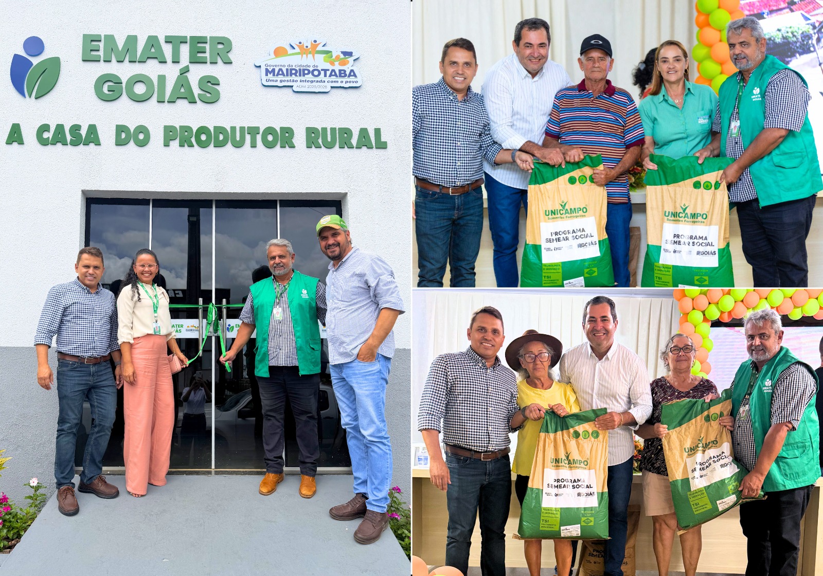 A Emater Goiás inaugurou, no último sábado (21), uma nova unidade local no município de Mairipotaba. Durante a cerimônia, também foram entregues kits do programa Semear Social a produtores da região, impulsionando simultaneamente a assistência técnica e a produtividade local.